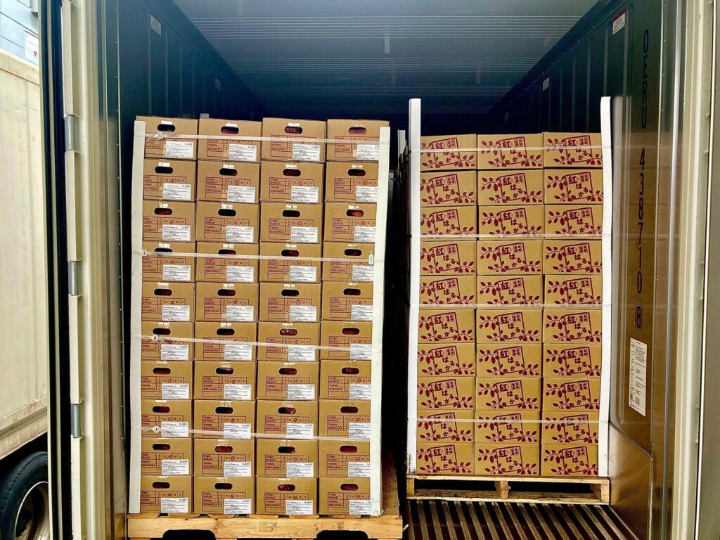 いよいよ出航。茨城県産「紅はるか」タイ向け輸出第一弾! https://tokyo-seika-trading.co.jp/wp-content/uploads/2026/03/beniharuka_box_label-1024x545.jpg 1024 545 tsb-user tsb-user https://secure.gravatar.com/avatar/3ad0b99a1bd4eb48ed8780c37e30b8066cc64f07a9334302fcfa44f3dbe3ac0c?s=96&d=mm&r=g 2026年4月10日 2026年4月10日 2026年4月10日 tsb-user no comments 0 タイでも人気者になります様に。 茨城県産紅はるか。海上コンテナへの積み込みが完了しました。本日いよいよ、出港です。 第一弾として、S、M、L あわせて約2,400ケース。タイでも人気者になります様に。ไปก่อนนะ ! コンテナに積み込み中 積み込み完了!