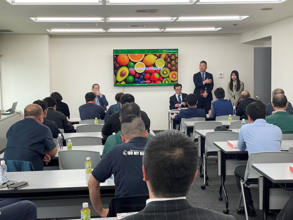 大田市場場内のお取引先各社をお招きし、2026年度の販売方針説明会を執り行いました。